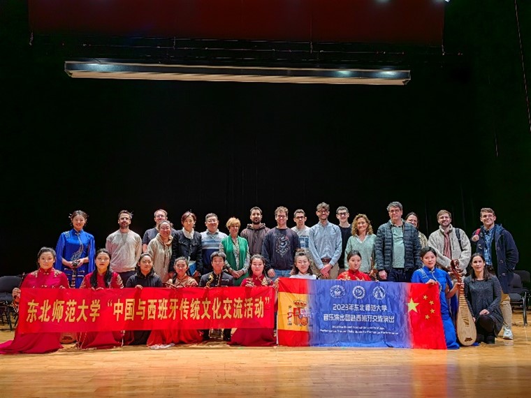 应西班牙瓦伦西亚大学孔子学院的邀请,我校音乐学院师生前往西班牙参加中国与西班牙传统文化交流项目文艺演出,并在庆祝孔子学院成立16周年庆典上进行汇报演出。 11月27日至12月1日,我校音乐学院民乐管弦乐团师生代表分别在西班牙音乐高校、音乐小镇、音乐厅及电视台等地进行演出共11场。唢呐曲目《百鸟朝凤》、合奏曲目《黑土情》《金蛇狂舞》《花好月圆》等精彩演奏悉数登场,生动展现中华民族传统音乐文化的独特魅力...