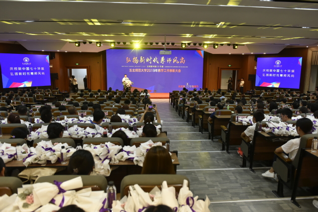“5、4、3、2、1”……随着东师本部三舍C座灯光“上课”“起立”字样的亮起,全场观众齐声高喊“教师节快乐!”盏盏灯光汇聚成了“老师您好”“强师报国 求实创造”“青春心向党 建功新时代”“庆70华诞 我爱你中国”...