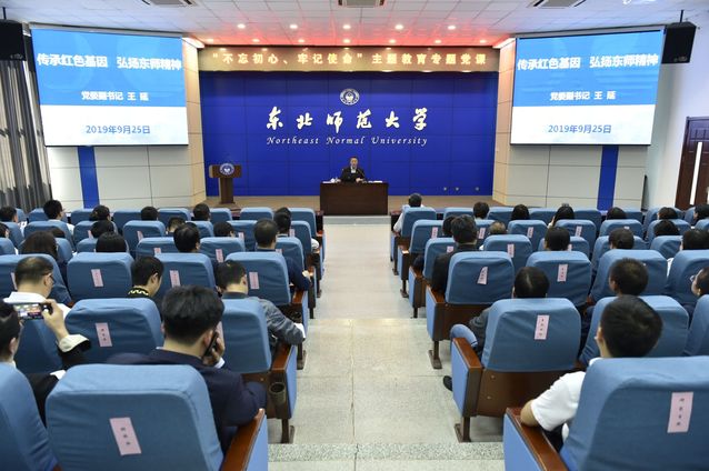 按照学校党委关于“不忘初心、牢记使命”主题教育的工作部署,9月25日,机关党委、党委宣传部举行 “不忘初心、牢记使命”主题教育专题党课。学校党委副书记王延为机关部处近400名党员及领导干部上了一堂题为“传承红色基因 弘扬东师精神”的党课。教育部“不忘初心、牢记使命”主题教育第五巡回指导组副组长韩晓峰参加了党课学习活动。党课由机关党委书记孙建智主持。 党课上,王延从“根在延安”“东师精神”“强校之梦”三方面作了生动的讲述。...