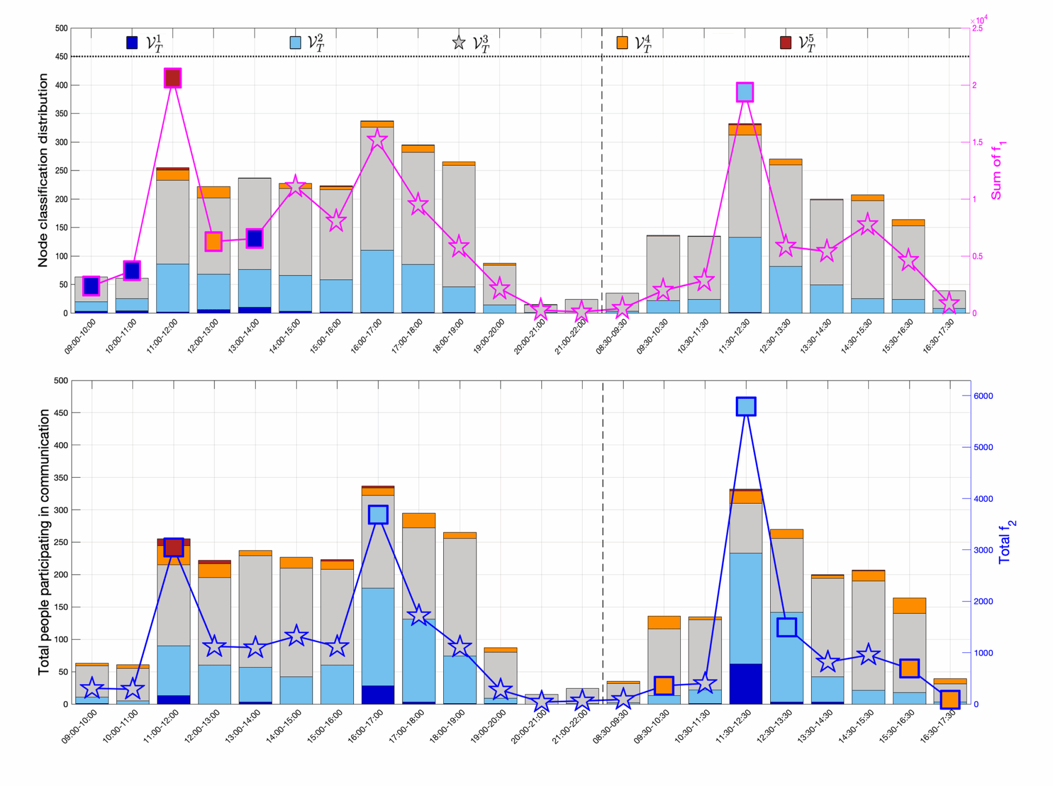 图2. 法国尼斯会议参会人员社交行为的谱图小波分析。