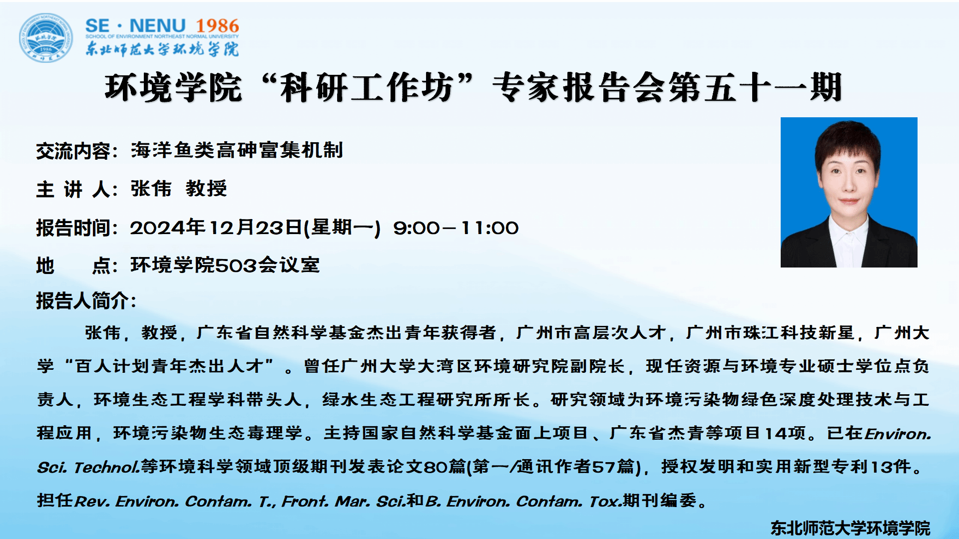 标题:环境学院“科研工作坊”专家报告会--海洋鱼类高砷富集机制