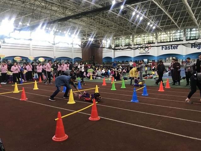 此次亲子活动根据幼儿的不同年龄,组织了丰富多彩并富有童趣的运动项目。豆豆组开展了“争夺宝座”“加油,袋鼠爸爸”的游戏,苗苗组开展了“奇兵小将”“穿越火线”的游戏,朵朵班组开展了“摸石过河”“手脚并用”的游戏,果果组开展了“勇敢的兵娃娃”“传递胜利”的游戏活动。