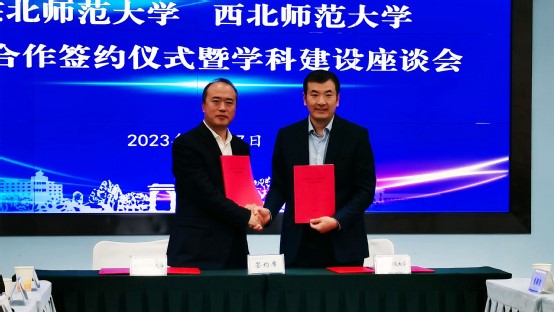 仪式上,我校与西北师范大学签署教育学、简牍学学科共建计划书。签约仪式后,两校召开了学科建设座谈会。西北师范大学副校长田澍、李建民、张明军,两校有关职能部门和学院负责人参加相关活动。