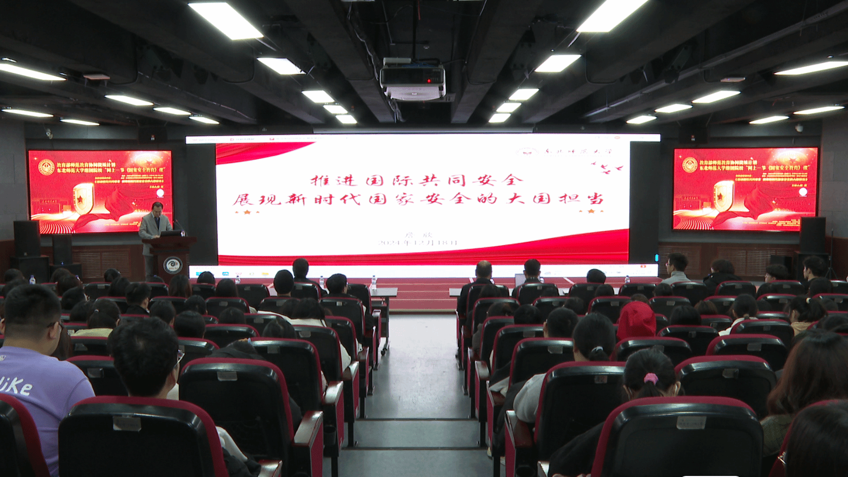我校政法学院詹欣教授以马克思主义理论研究和建设工程重点教材《国家安全教育大学生读本》(程建平、李忠军主编)第八章“坚持以促进国际安全为依托”的内容为基础,以“推进国际共同安全,展现新时代国家安全的大国担当”为题,围绕新的全球安全观和地区安全观、维护国际社会的共同安全、推动构建新型国际关系等,重点讲解了“坚持以促进国际安全为依托的科学内涵”,结合国际战略格局发生的深刻演变、新一轮科技革命和产业革命正在重塑全球创新版图等现象,阐述了“新时代国际安全面临的风险挑战”,紧扣构建普遍安全的人类命运共同体、建立健全国际和地区安全机制、完善全球安全治理体系、坚定奉行独立自主的和平外交政策等方法,分析了“新时代维护国际安全的途径和方法”。詹欣教授将理论与实践进行了紧密结合,向与会师生具体阐述了我国积极参与国际安全合作和全球安全治理过程中所贡献的中国智慧、中国方案和中国力量。