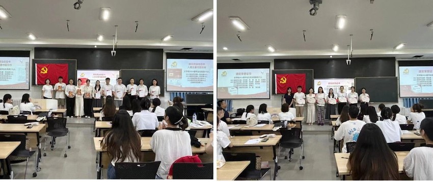 为深入学习贯彻习近平新时代中国特色社会主义思想,推动党纪学习教育走深走实,引导学生党员在学思践悟中坚定理想信念,近日,我校文学院党委举办了预备党员宣誓仪式暨毕业生党员教育大会。学院党委书记解玲、预备党员及毕业生党员参加了此次大会。